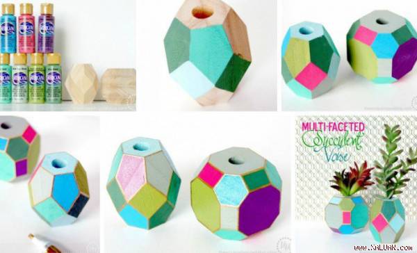 Một lọ hoa bằng gỗ với nhiều góc cạnh như thế này sẽ là nơi thử sức phối màu trang trí của bạn đấy.